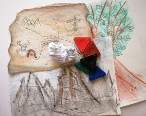 - Který potom rozložíte a vložíte ho pod kancelářský papír a magickou voskovkou frotujete a vznikne Vám zase krásná struktura, kterou můžete použít k dalšímu tvoření (např. vyrobit si mapu pokladu,..). Protože na frotáž vytvořenou magickou voskovkou můžete dále psát a kreslit.